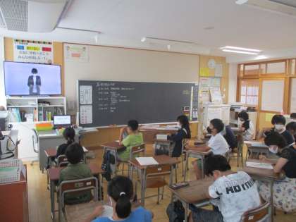 テレビ放送を使って終業式を行いました。校長先生の話を聞いて、子供たちは一学期の自分を振り返り、自分のできるようになったことや頑張ったことを思い起こしていました。