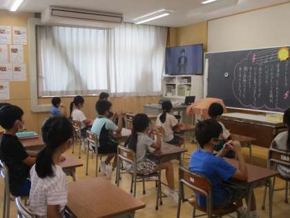オンラインで始業式をしたあと、学年で2学期の行事や新しい仲間について話し合いました。2学期は学年目標のように「今の自分の行動は輝いているかな」と振り返りながら過ごしてほしいと思います。