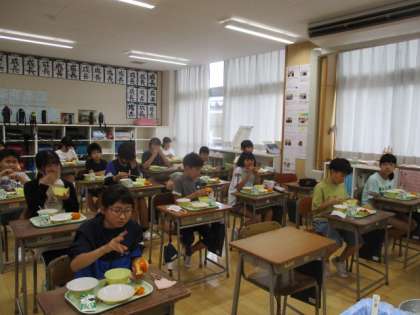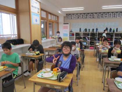 2学期の給食が始まりました。準備から一生懸命に取り組むことができました。