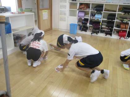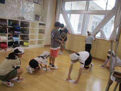1〜6年生のひまわり班で、清掃を行いました。1年生と一緒に机を運ぶ姿や、雑巾やほうきのかけ方を教えてあげている姿がほほえましかったです。