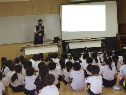 富山県警察の県少年サポートセンターの方に来校して頂き、「くもくん教室」を開催していただきました。