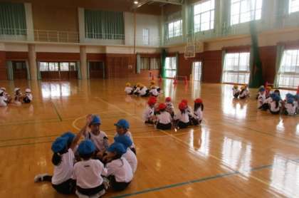試合の前には、作戦タイムをとって、たくさん点が取れるように相談しました。