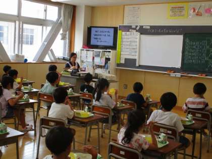 教務主任の先生から、学校の歴史や校歌を作った方のお話がありました。