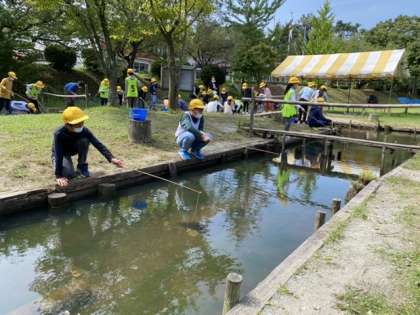 4年生 宿泊学習 ザリガニつり・竹ジャングル