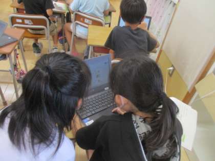 挿絵を正しい順番に並べ直して、お話の大筋を確認しました。