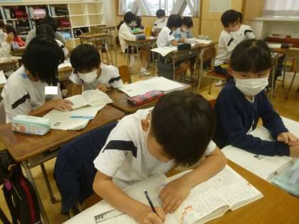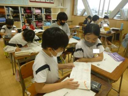 ペアの友達と一緒に、語句についての理解を深めていました。