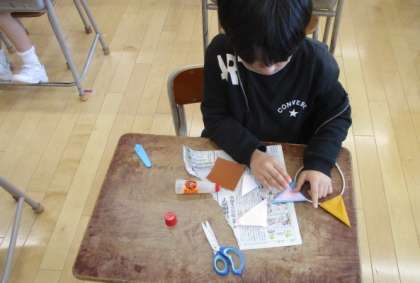 図画工作科の学習で、劇の衣装になる猫の耳をつくりました。