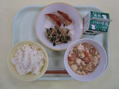 こんだて ご飯 牛乳 焼きぎょうざ ナムル えびと豆腐のうま煮