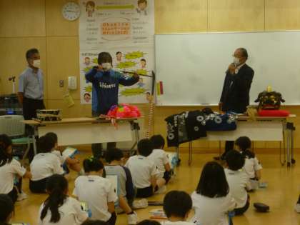 獅子舞について学んだ子供たちは、実際に獅子舞の踊りが見たくなり、リクエストをして、見せていただきました。