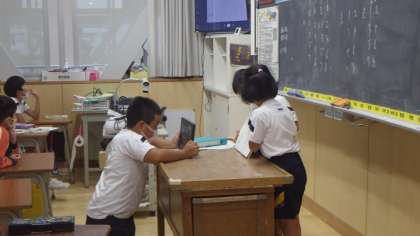 国語科で学習中の「ちいちゃんのかげおくり」を思い出しながら真剣に聞いていました。