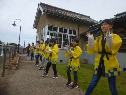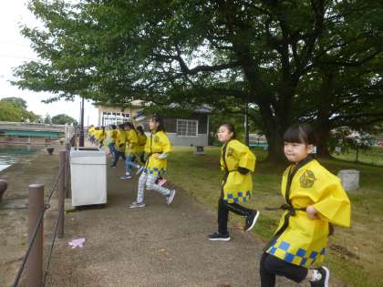 学校の代表として、運河祭りで奥北音頭を披露しました。