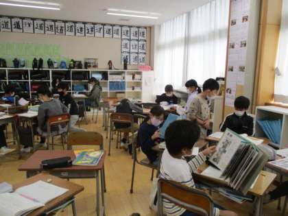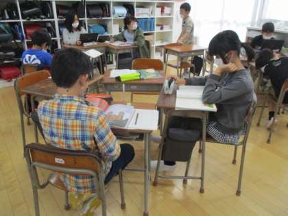 「たずねびと」の学習では、言葉に着目したり、広島の戦争の話を読んで当時の場面を思い浮かべたりしながら、物語を読み進めています。主人公の綾の立場で考えたり、自分が戦争のある時代に生まれたらどう思う?と友達に投げ掛けて話し合いをしたりするなど、進んで学習する姿がたくさん見られました。