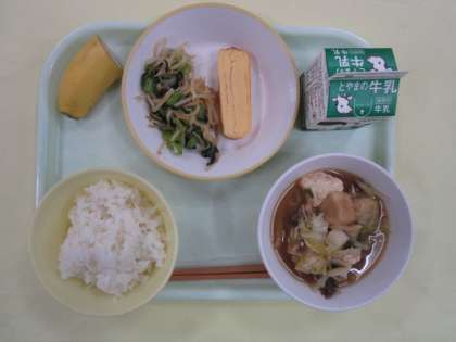 こんだて ごはん 牛乳 厚焼き卵 もやしのおひたし すきやき バナナ
