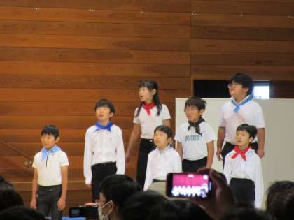 今日は、学習発表会本番でした。「緊張した」「きれいな声を出すためにがんばった」と今まで練習してきた成果を出すことができました。