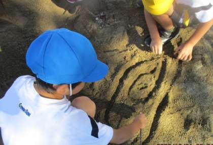 図画工作科「すなとなかよし」の学習で、砂遊びをしました。