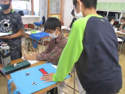 ミシンを使って縫ったり、アイロンでフェルトを付けたりして、オリジナルの作品ができました。今日は、友達のよいところを見つけながら、鑑賞しました。