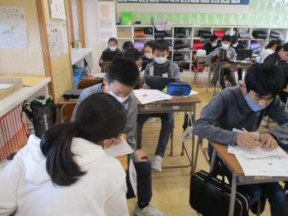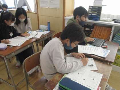 疑問を調べながら、食物連鎖について、外国語でスピーチの文章を考えました。