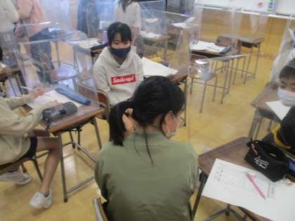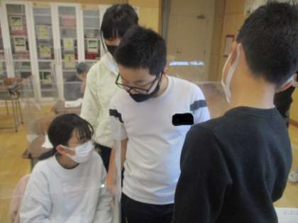 リズム伴奏を、楽器の代わりに声で演奏しました。音符や言葉を使って、グループごとにリズムを作りました。速さや言葉を工夫しています。