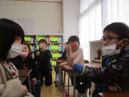 繰り下がりのある引き算の勉強をしています。計算の仕方を隣の人と一緒に考えました。一生懸命に考えながら話す姿がみられました。