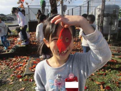 生活科「あきとあそぼう」の学習で、校庭に落ちている落ち葉で遊びました。