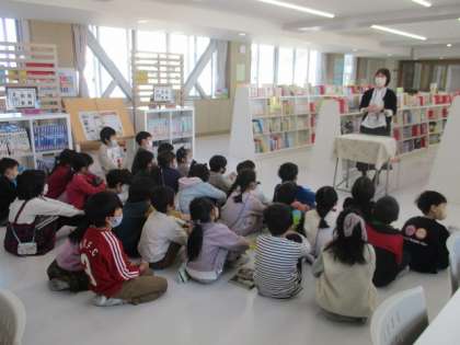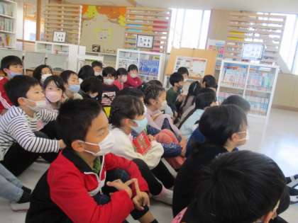 今日は図書室で、絵本の読み聞かせを司書の先生にしていただきました。