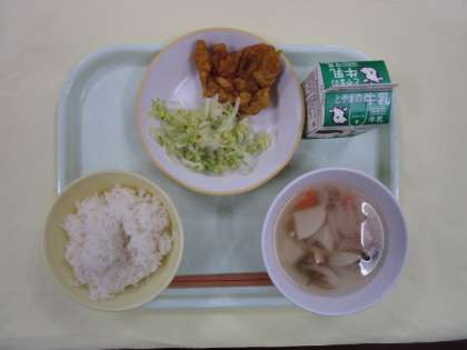 こんだて ごはん 牛乳 ポークパコラ ゆでキャベツ かぶのスープ