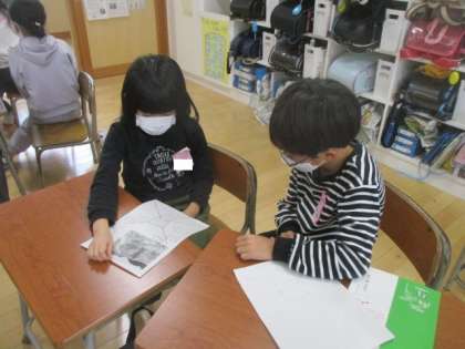と、決めた設定を友達に話しました。友達に話すことで、どんなお話にしようかさらに考えが整理されたようです。