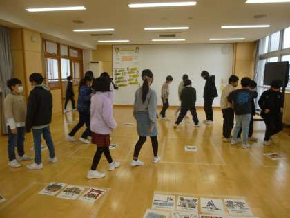 昨年学習した「Go straight.」「Turn right.」「Turn left.」を使って道案内をしています。今年は、「Excuse me.」や「Where is the 〇〇?」等の表現も取り入れながら行っています。