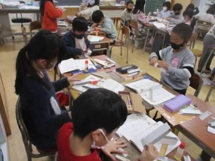 教科書の本文を読みながら、馬のおもちゃを作ります。
