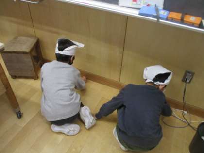 使い終わった雑巾を捨てるときに、「ありがとう」と声をかけている子がたくさんいました。物を大切に思う心が育っているすてきな子供たちです。