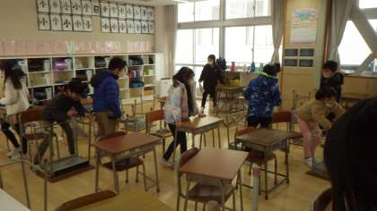 2学期の間、使用した机やいすの脚、ロッカーなどを隅々まで掃除しました。3学期、気持ちよく使えるようになりましたね。