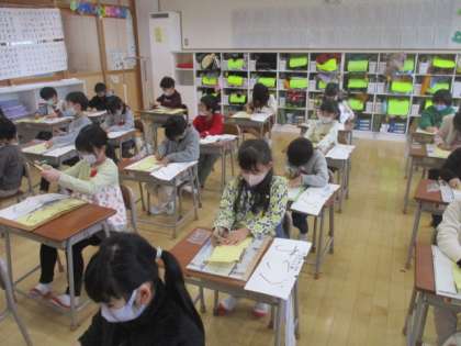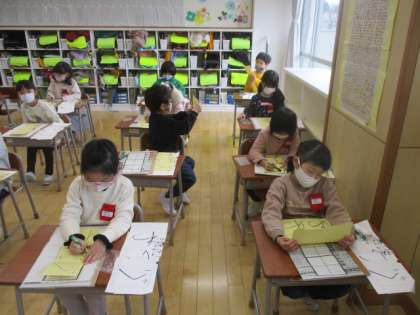 練習したことを生かそうとする子供の姿や、「どっちがきれいに書けたかな?」と、じっくり選ぶ子供の姿が見られました。