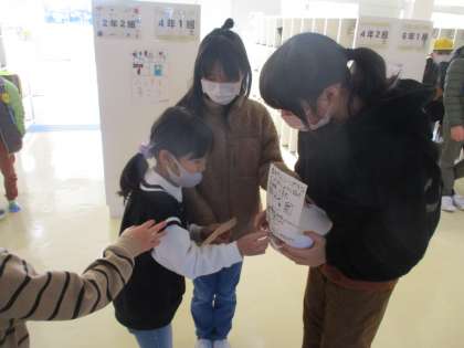 朝、児童ギャラリーに立ったり、各教室を回ったりして、書き損じハガキ等の回収を呼びかけています。
