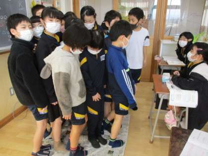 1平方メートルの中に、何人入れるか調べました。はみ出さないように真剣でした。