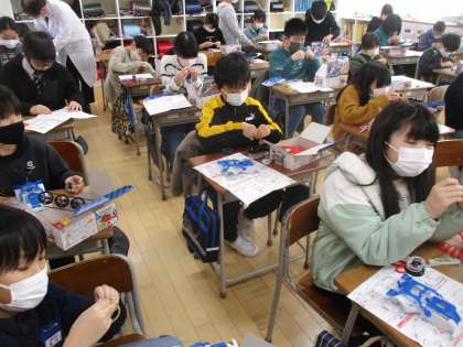 巻き方の上手な子供が友達にコツを教えたり、きれいに導線を巻き付けたりしていました。