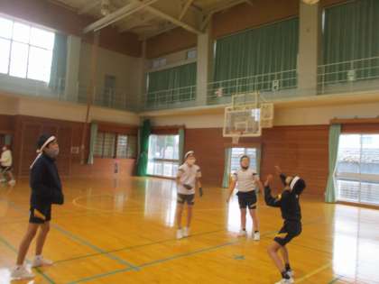 パスをつなげてから、相手コートに返すことを意識して行いました。たくさんラリーが続くように声を掛け合って行っていました。