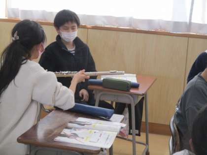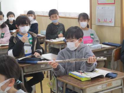 実際にフルートを持ち、キーを触ってみるなど、うれしそうな子供たちでした。