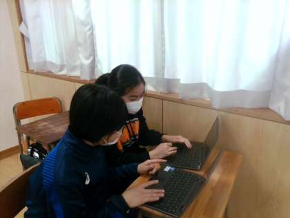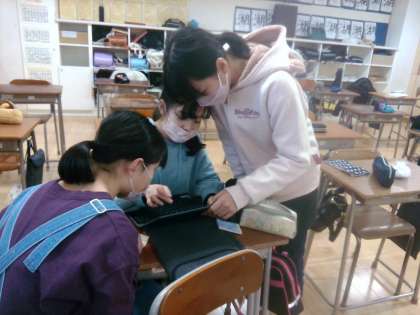各グループでスライドづくりを行いました。取り組んだことや、調べたことをまとめています。クロムブックを用いて楽しんでスライドをつくりました。