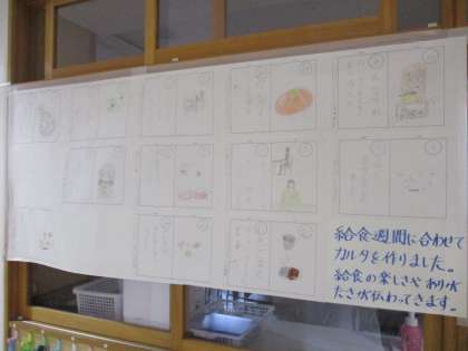 給食週間中、栄養士さんへの手紙を放送で読んだり、給食カルタを作ったりしました。