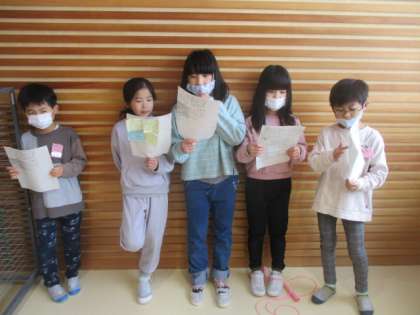 自分の出来るようになったことがクラスの友達やお家の方伝わるように、原稿を考えたり練習をしたりしています。