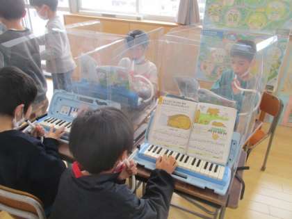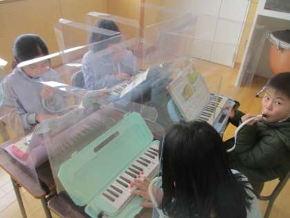 グループの友達と、運指やリズムを確認しながら弾く練習をしました。
