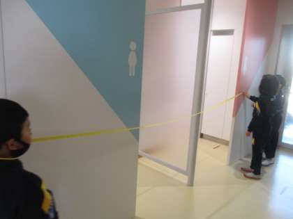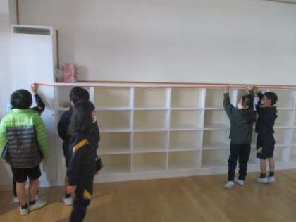 前時に作った3mものさしを使って、いろいろなところの長さを測りました。