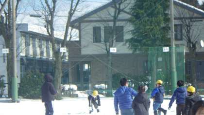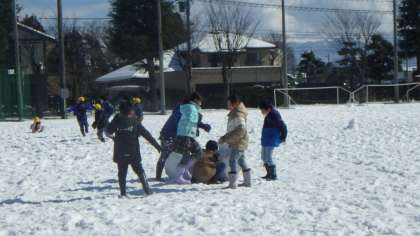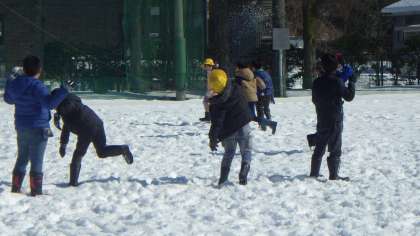 雪だるまを作ったり、雪合戦をしたりしていました。グラウンド一面が雪で覆われ、一人一人が自分の好きな遊びをしていました。