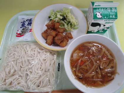 2月13日(月)今日の給食 公開日 2023/02/13 更新日 2023/02/13 きょうの給食 こんだて ソフト麺 ソフト麺の五目あん 牛乳 ごまだれポテト キャベツとブロッコリーのドレッシング和え 味付け小魚