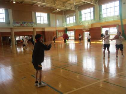 バスケットボールでは、パスやシュート、ドリブルの練習をしました。相手のことを考えたパスを出したり、シュートやドリブルをもっとうまくできるにはどうしたらよいか考えたりしながら行いました。