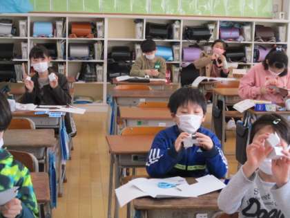 展開図を描き、直方体や立方体を作りました。完成して、大喜びの子供たちでした。