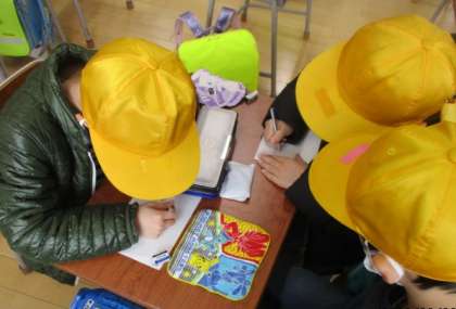2学期から始まった係での活動ですが、活動の中心は子供たちです。プレゼントの折り紙や塗り絵用のイラスト、クイズ出題の準備やイベントの相談、お笑いのネタづくりなど、それぞれの係で非常に盛り上がっています。