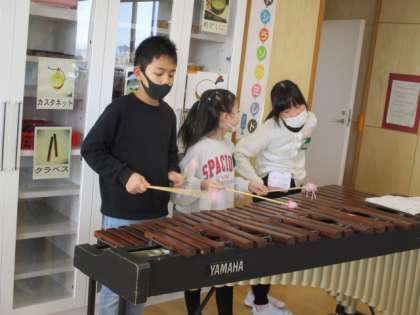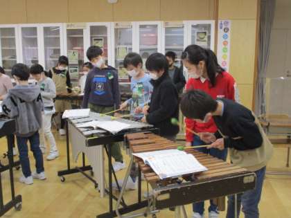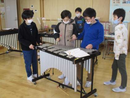 合奏の練習をしています。木琴や鉄琴などを練習中です。