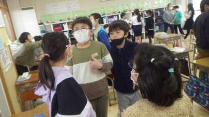 「Who are you?」「I'm 〜.」等を使って、チェーンゲームを行いました。グループの友達が言ったことをしっかり聞き取り、覚えて発表している姿が見られました。