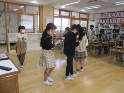 リコーダーで校歌の練習をしました。友達と一緒に行進しながら楽しく演奏していました。